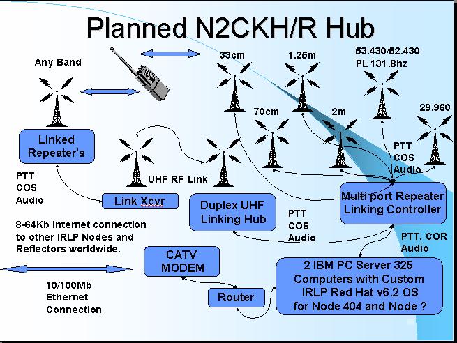 The other co-hosted N2CKH/R repeaters and the AERIALS 443 repeater in the Township of Ocean, in eastern Monmouth County and other repeater systems around Ocean and Monmouth counties will be linked via this hub on demand.